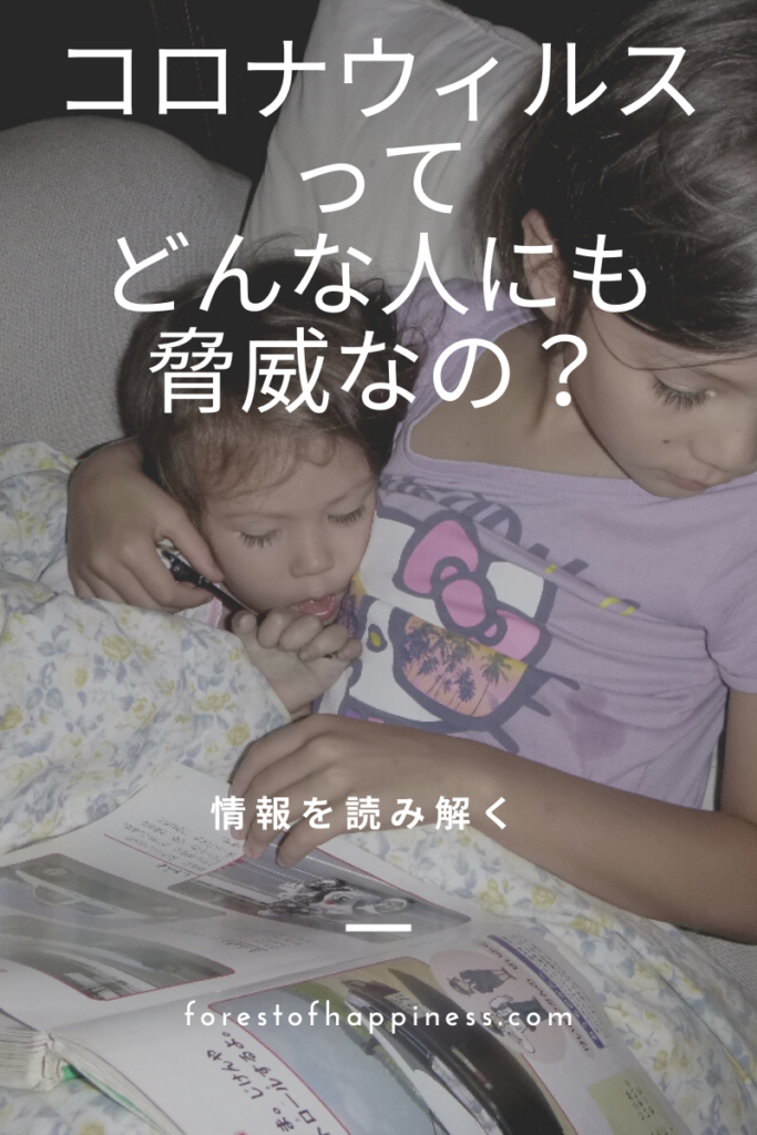 ニュースだけ見ると、 コロナウィルスってどんな人にとってもとんでもない脅威!! なのかと思ってしまうけど、 重症化したり、死亡した人の多くは 高齢者や、心臓病、糖尿病等の基礎疾患を前もって患っていた人で、 子どもには殆ど感染せず、 かか... -